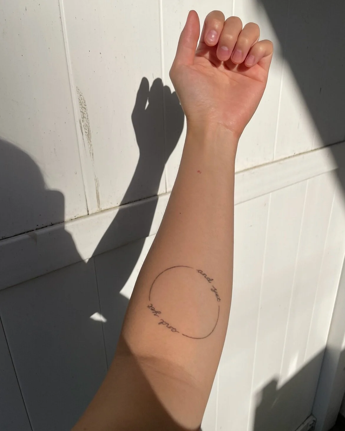 Now that I have this tattoo on my forearm, I feel more like myself, like I have solidified my intentions and how I want to be and live moving forward. I’ve been working on grounding myself in my body and connecting to how I really feel, and this is a reminder every day. And yet and yet.